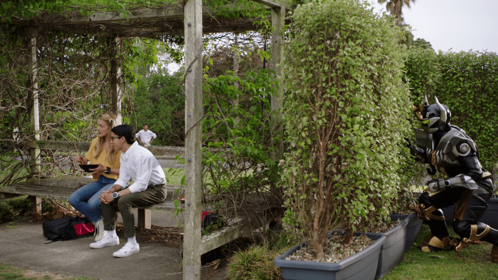One of the Channel 10 News cameras caught the Rangers morphing. But oops, someone blasted the memory card during the battle. Zoey’s mom had her camera guy recover the footage. She was so excited to have the Rangers’ identities in the palm of her hand that she told her daughter about it. Zoey explained what the phrase “secret identity” meant, but Mrs. Reeves shrugged it off. Either Zoey needed to kill her mom, or figure out a way to convince her not to put them on blast during prime time.